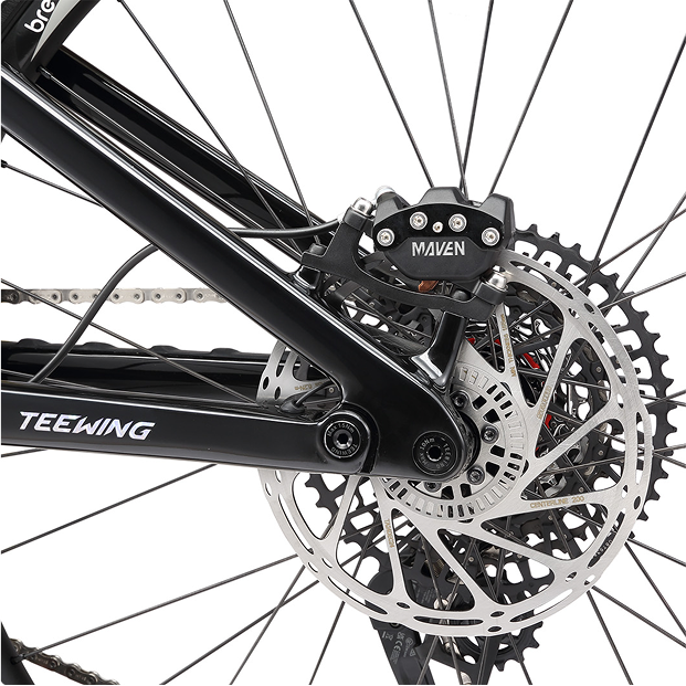 Carbon Frame – enhanced stiffness but still weighing only 2.37kg, the frame and its geometry provide nimble ride whether climbing or descending. Total bike weight is under 50lbs (22.7kg) with an 800Wh high-capacity battery!