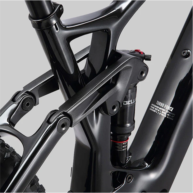 Carbon Frame – enhanced stiffness but still weighing only 2.37kg, the frame and its geometry provide nimble ride whether climbing or descending. Total bike weight is under 50lbs (22.7kg) with an 800Wh high-capacity battery!